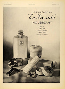 This is an original 1934 black and white French print ad for the "En BeautŽ" beauty products by Houbigant.