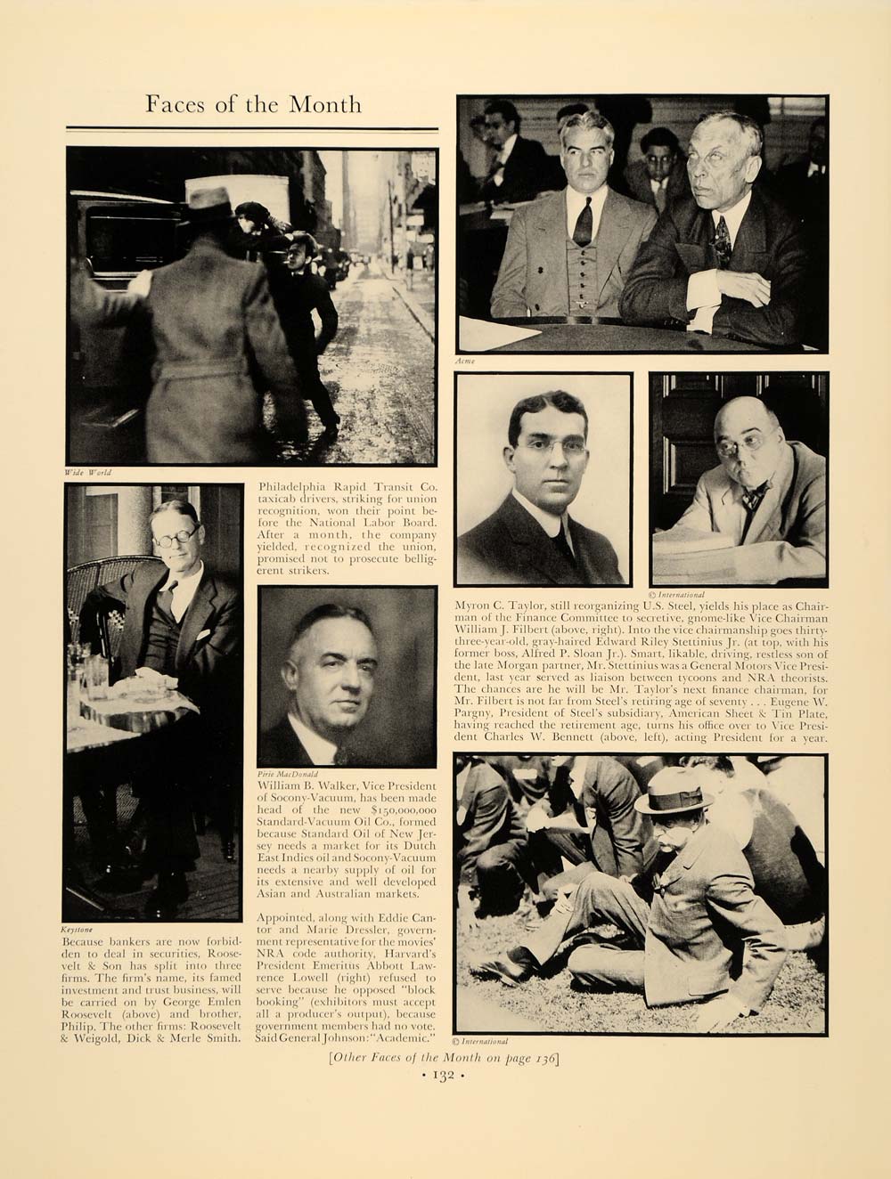 Keywords specific to this image: William J Filbert, Alfred P Sloan Jr, General Motors , Edward Riley Stettinius Jr, NRA, Eugene W Pargny, American Sheet and Tin Plate, Charles W Bennett, Eddie Cantor, Marie Dressler, Emeritus Abbott Lawrence Lowell, General Johnson, Roosevelt and Son, George Emlen Roosevelt, Philip Roosevelt, Roosevelt and Weigold, Dick and Merle Smith, Pirie MacDonald, Philadelphia Rapid Transit, Taxicab Drivers Strike, National Labor Board