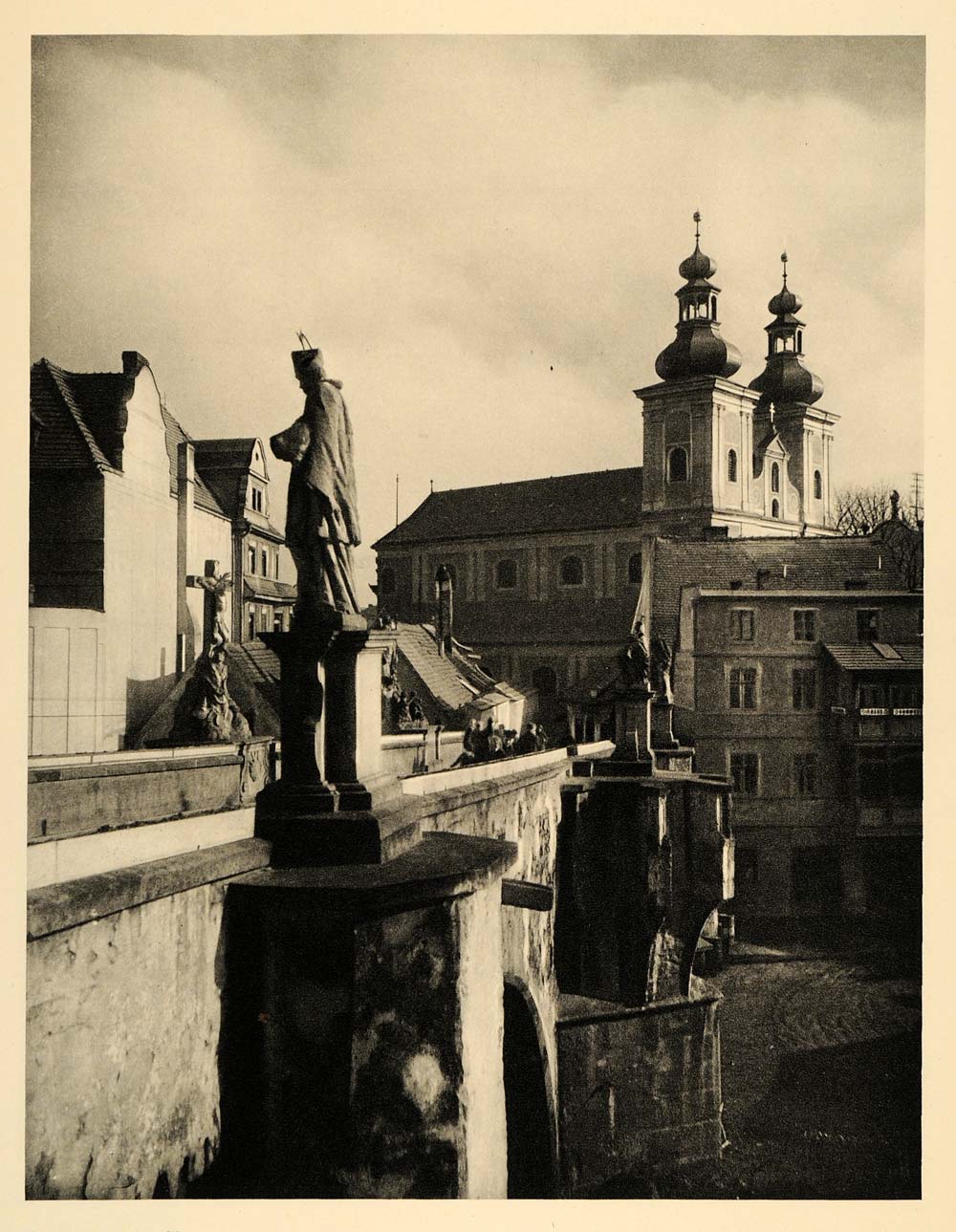 This is an original 1934 photogravure of the Neiss Bridge in Glatz, Poland (Polska). The church shown is St. Maria. The photographer of this image is Hans Retzlaff of Berlin, Germany (Deutschland).