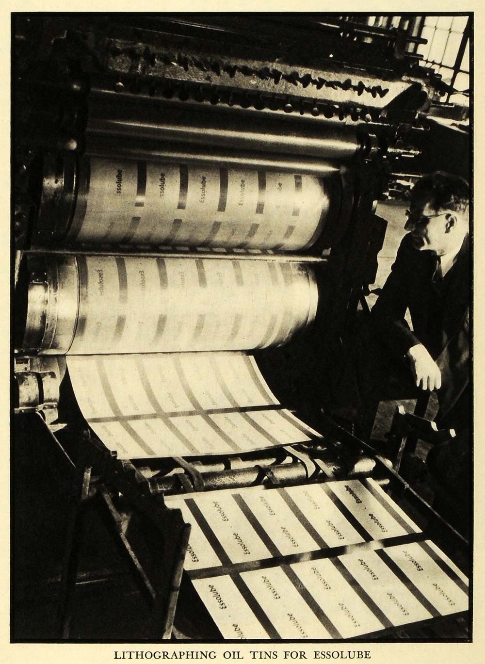 This is an original 1934 halftone print of labels being lithographed for the Standard Oil Company of New Jersey. The cans were made at the Continental Can Company.