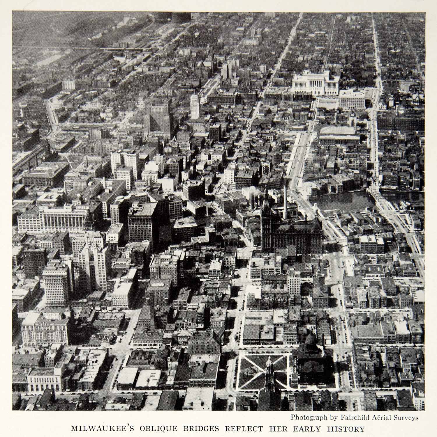 This is an original 1934 black and white halftone print of the cityscape of Milwaukee, Wisconsin.