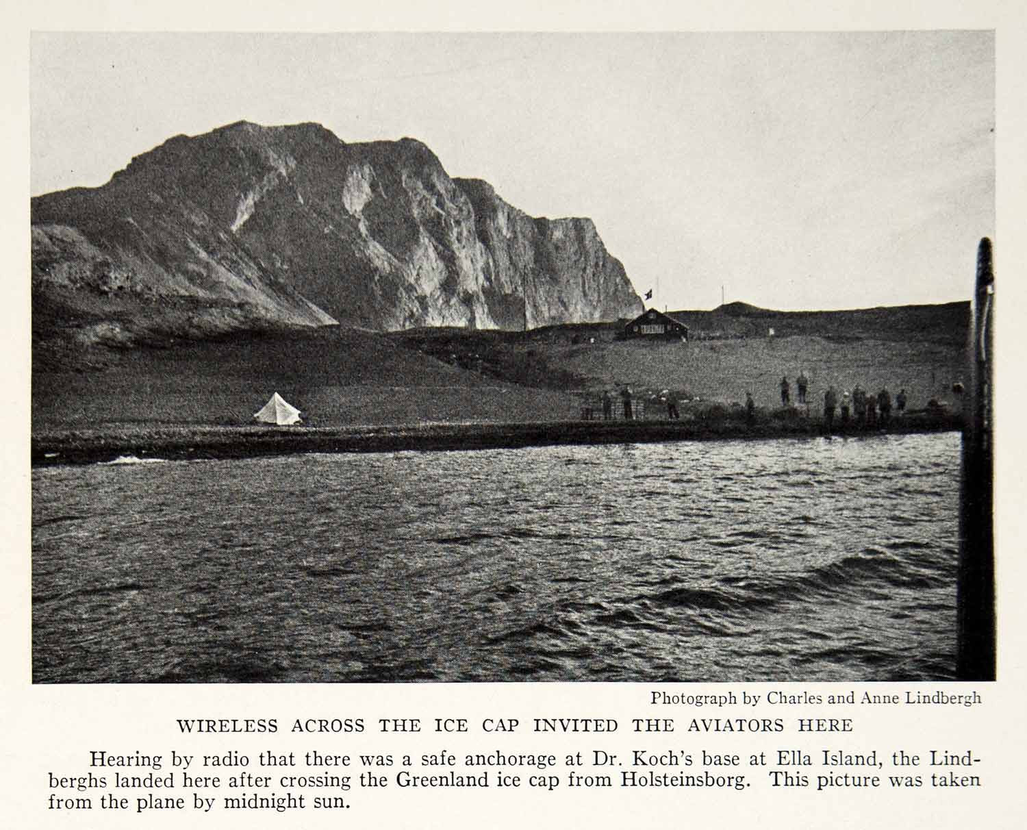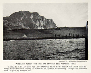 This is an original 1934 black and white halftone print of the landing zone at Holsteinborg, also known as Sisimiut, in Greenland.