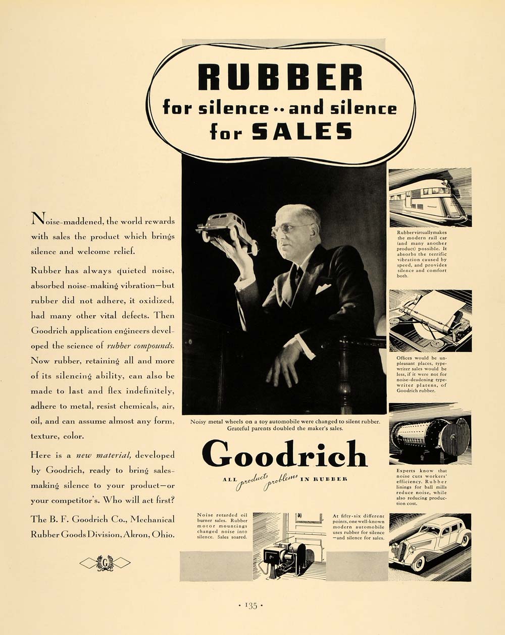 This is an original 1935 black and white print ad for B. F. Goodrich Company, the Mechanical Rubber Goods Division, of Akron, Ohio.