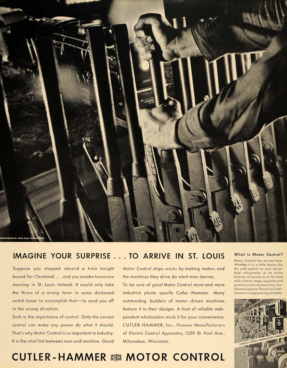 This is an original 1935 black and white print ad for the Cutler-Hammer, Incorporation, Pioneer Manufacturers of Electric Control Apparatus located at 1320 St. Paul Avenue, Milwaukee, Wisconsin.