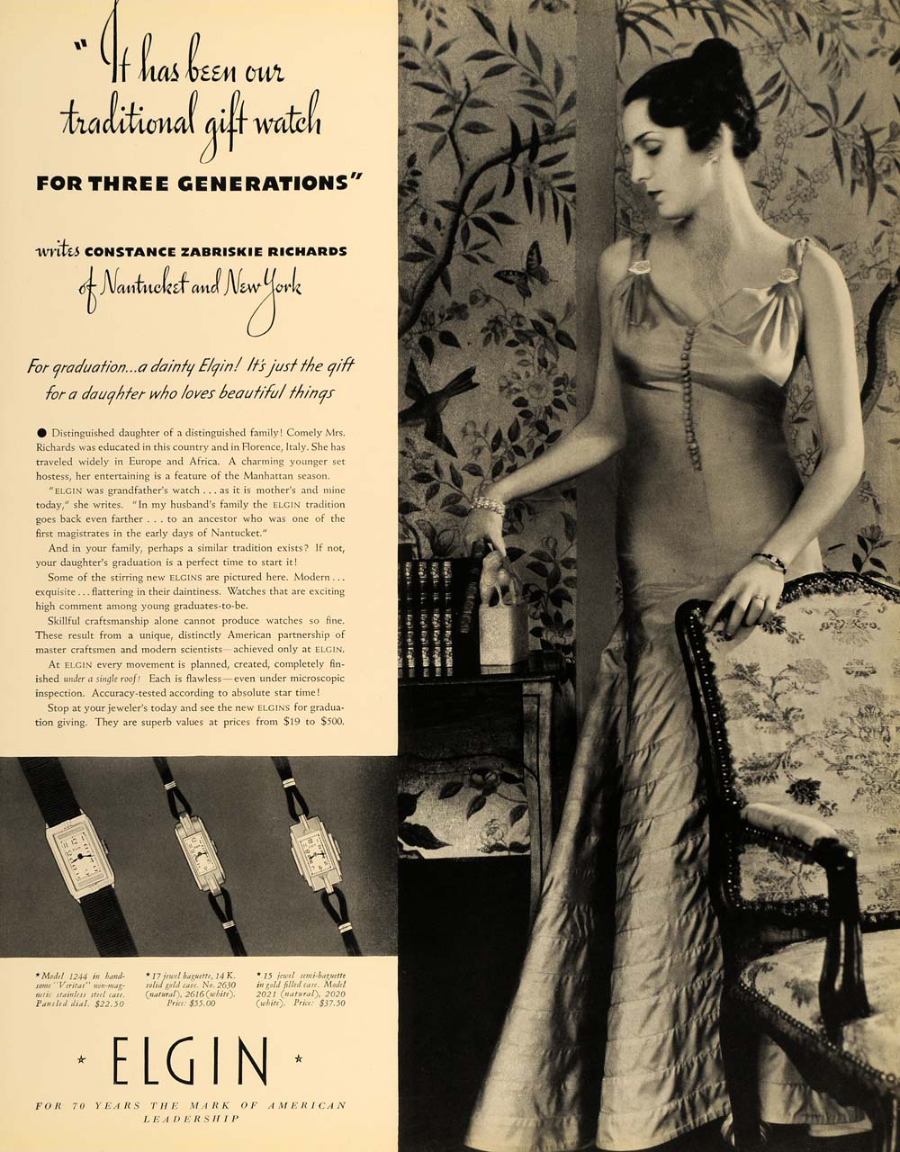 1935 Ad Elgin Jewel Watch Constance Zabriskie Richards - ORIGINAL F3A
