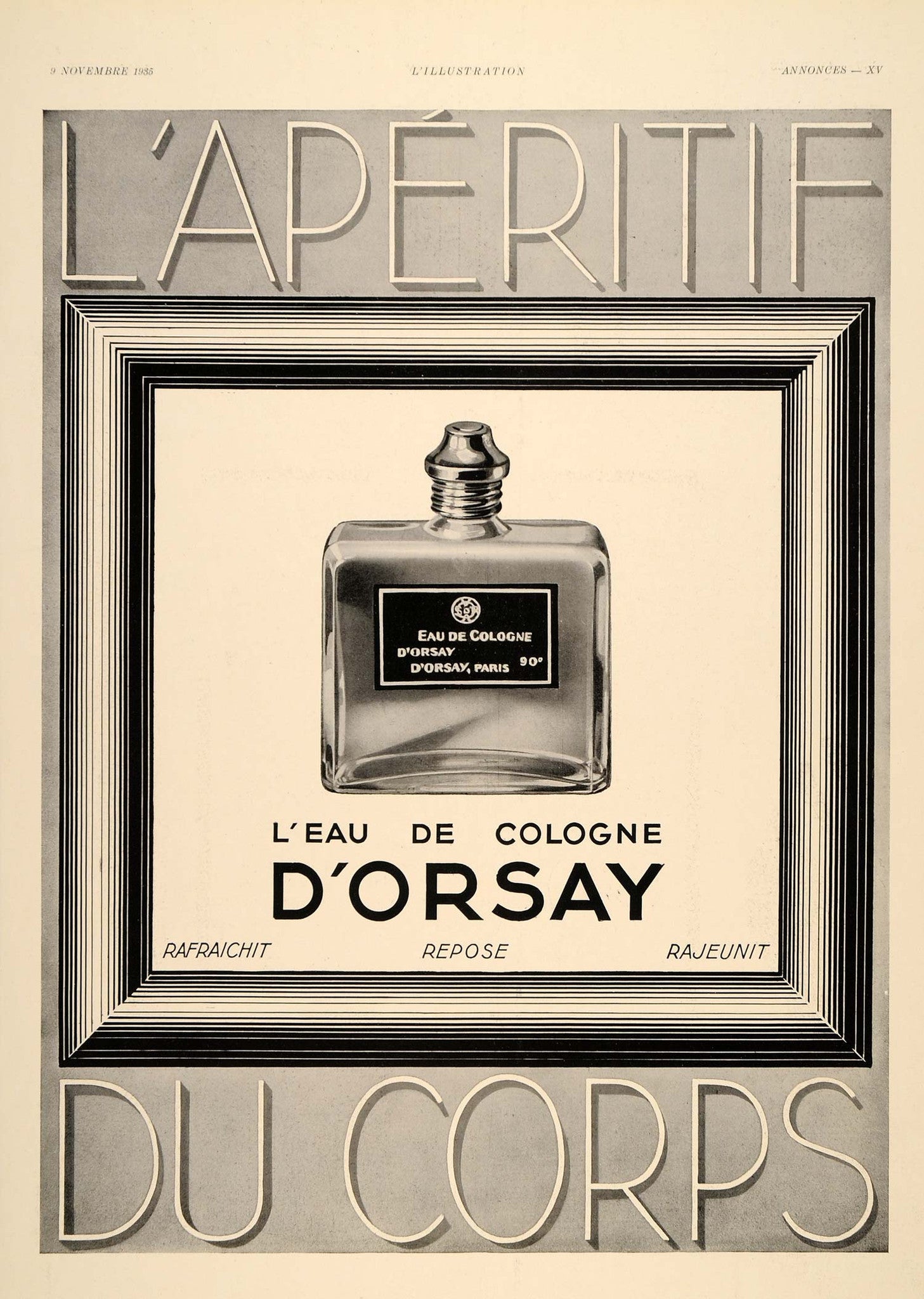 This is an original 1935 black and white print ad for d'Orsay eau de cologne, perfume. "L'Aperitif du corps."