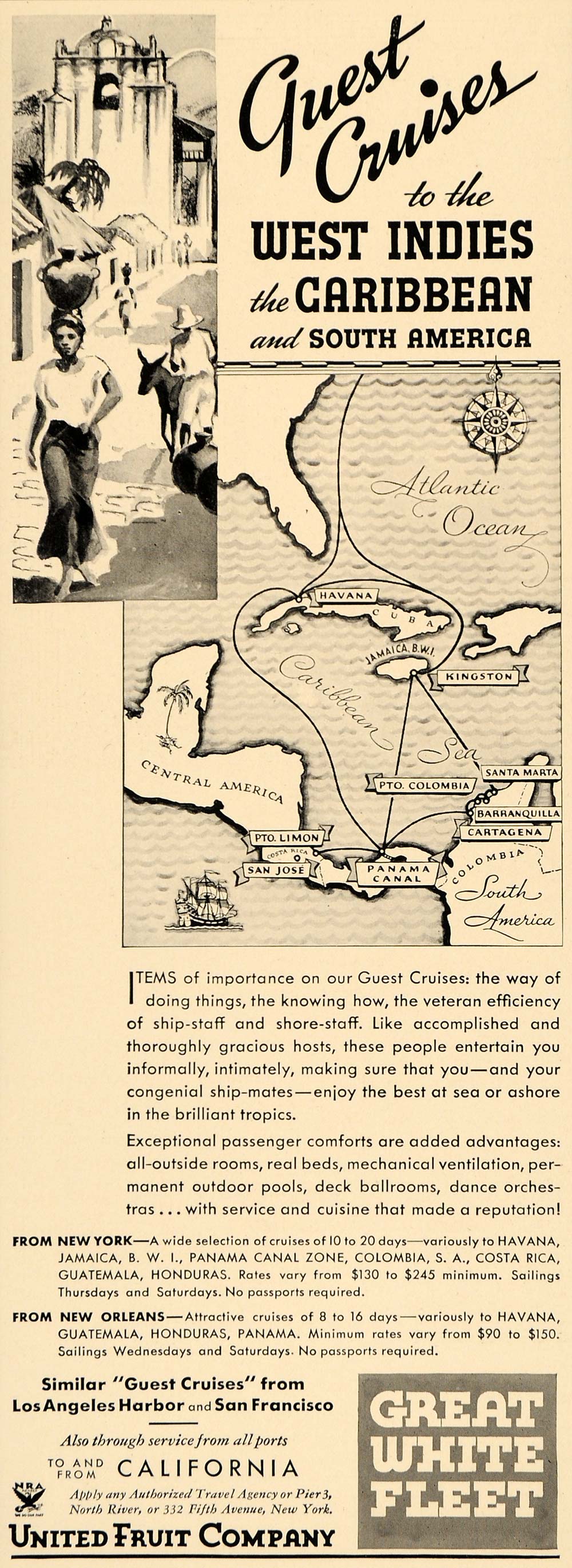 This is an original 1935 black and white print ad for the Great White Fleet cruises.