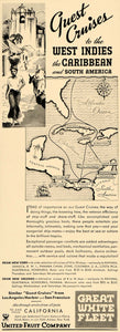 Keywords specific to this image: United Fruit Company, navigation, sailing, travel, journey, Voyage, Caribbean map Vintage Advertising