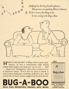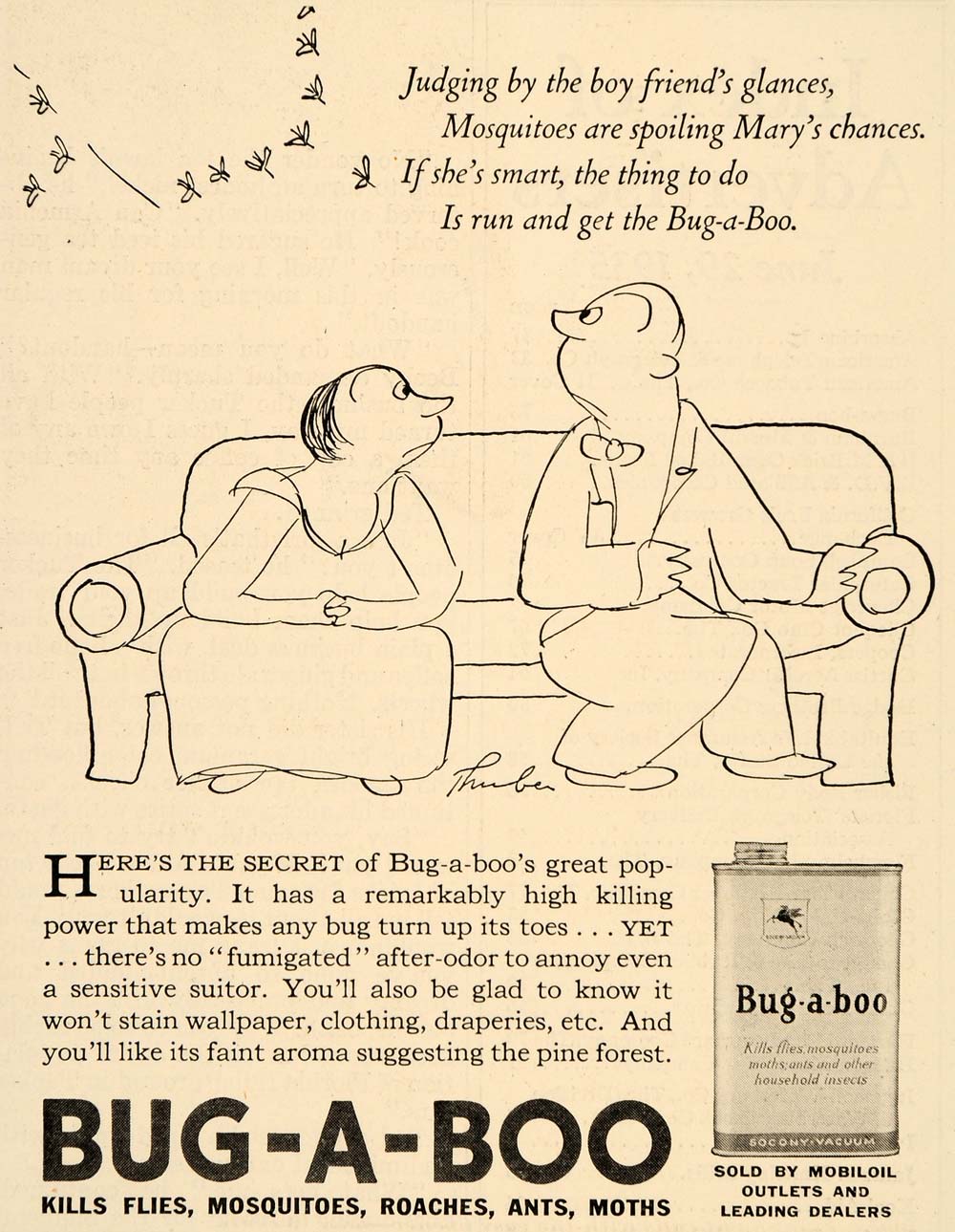 This is an original 1935 black and white print ad for Bug-A-Boo bug killer, sold by Mobiloil outlets.