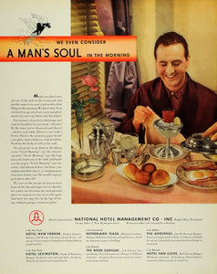 This is an original 1935 color print ad for the National Hotel Management Company, Incorporation located at 77 West Washington Street, Chicago, Illinois.