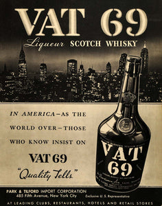 1935 Ad Park & Tilford Vat 69 Scotch Whisky Skyline - ORIGINAL ADVERTISING F3A