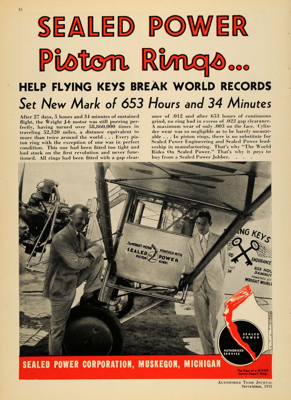 This is an original 1935 color print ad for sealed power piston rings by the Sealed Power Corporation located in Muskegon, Michigan.