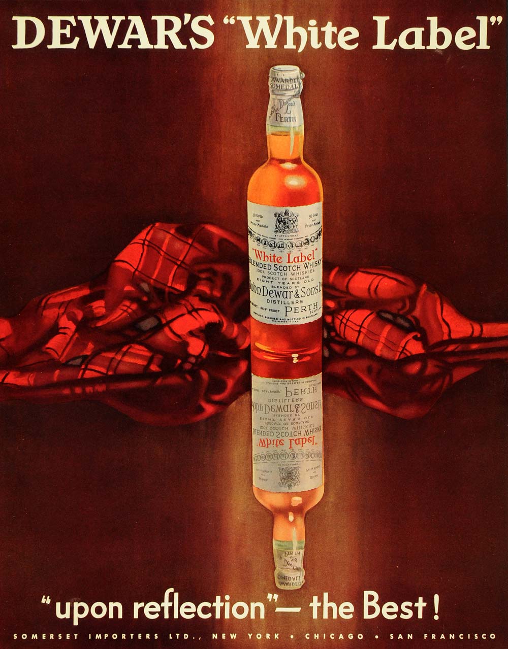 This is an original 1935 color print ad promoting the Deward's White Label from Somerset Importers Ltd. located in New York.