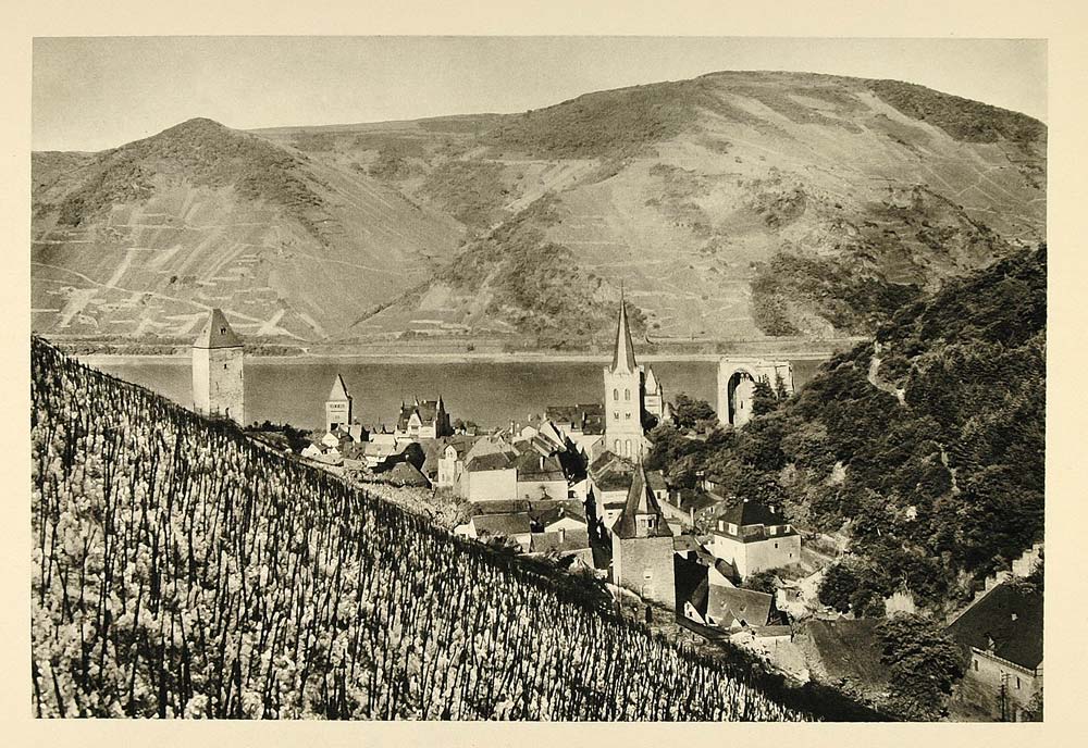 1935 Bacharach Rhine River Germany Town Vineyards - ORIGINAL PHOTOGRAVURE PTW1