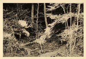 1935 Elk Wapiti Canadian Forest Landscape Canada Woods - ORIGINAL PTW2