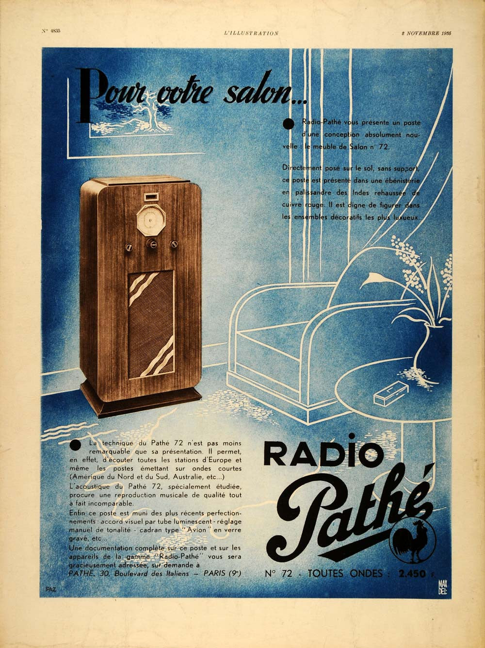 This is an original 1935 color French lithograph ad for the Radio PathŽ No. 72.