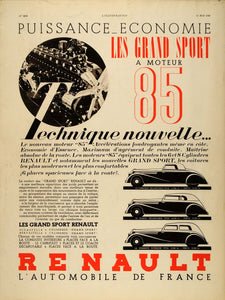This is an original 1935 two-color French lithograph ad for the Renault Les Grand Sport automobile. This is an excellent original print item for the collector of this vintage car!