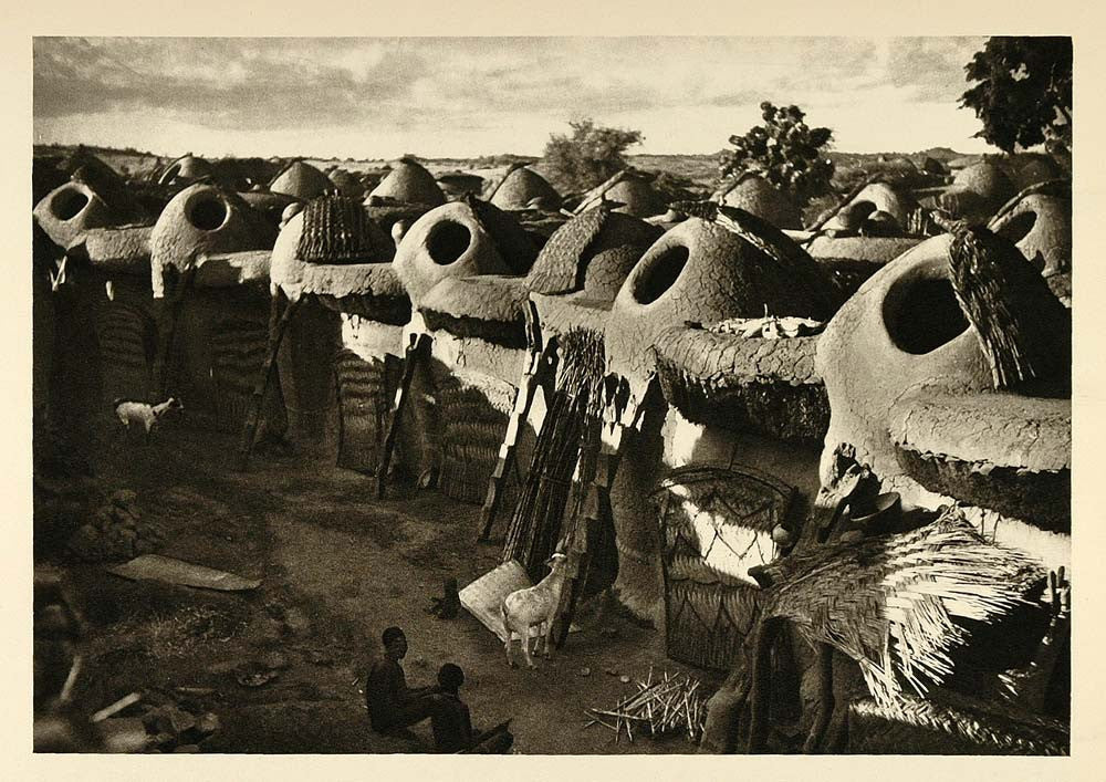 1935 Mud Hut Architecture Village Africa Lake Chad - ORIGINAL PHOTOGRAVURE PTW1