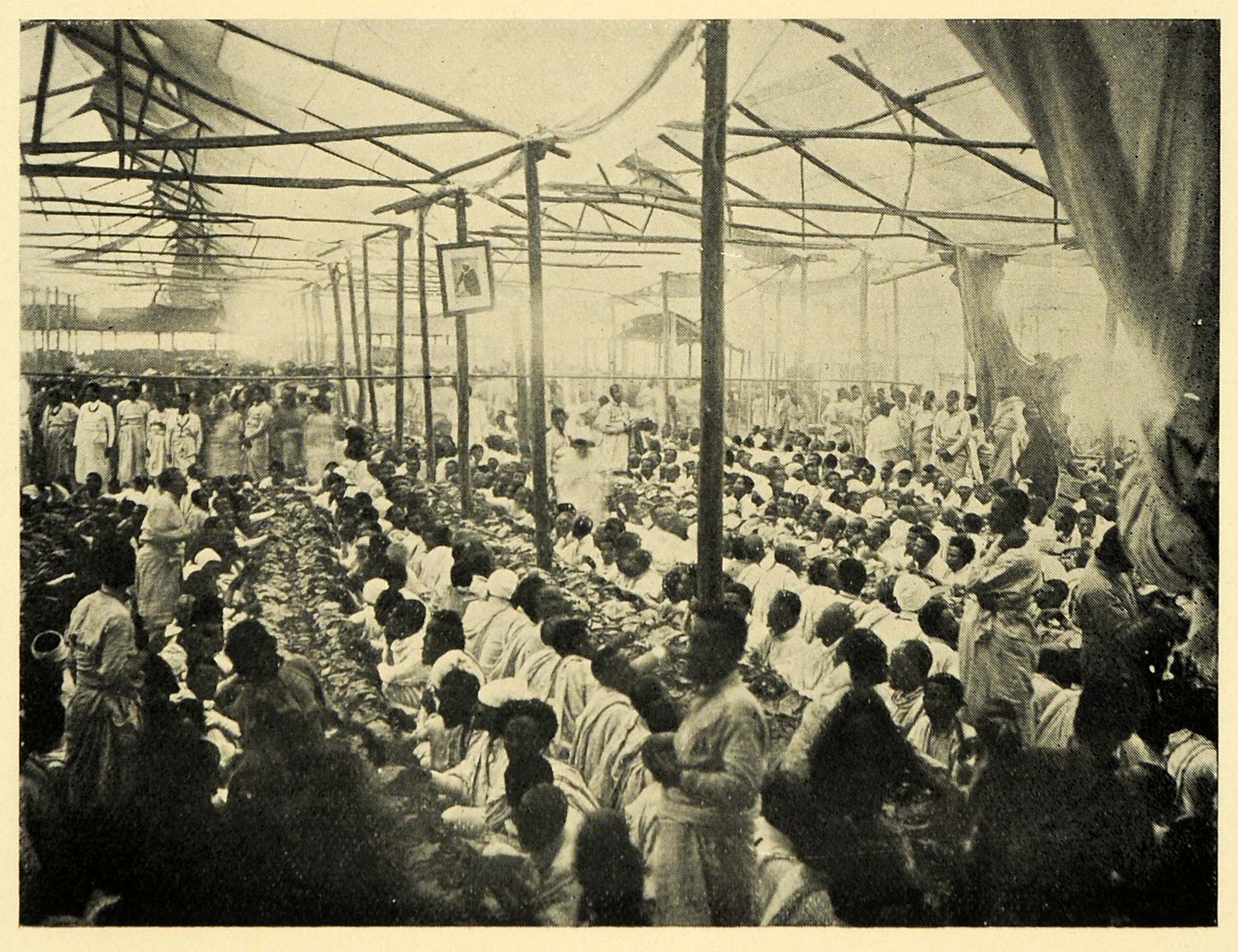 This is an original 1935 halftone print of the Great Gebur or Raw Meat Banquet, which is held on state occasions.
