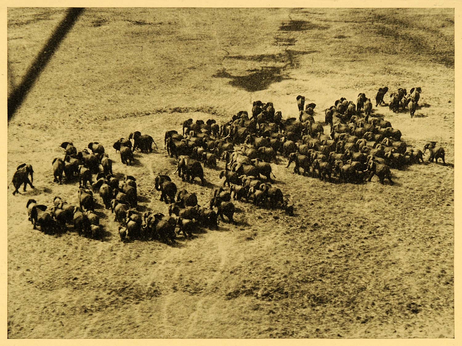 This is an original 1935 halftone print of a herd of elephants on the Lorian Swamp on the Ewaso Ngiro river of Kenya.