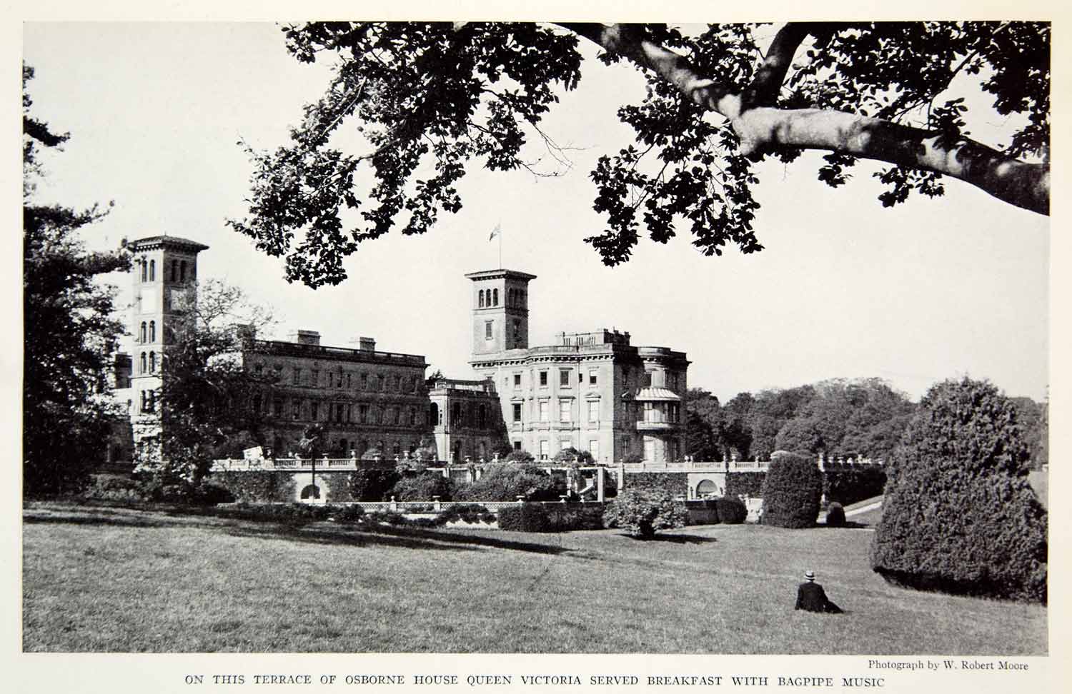 This is an original 1935 black and white halftone print of the Osborne House where Queen Victoria spent a lot of time and is now a museum and home for convalescent officers.