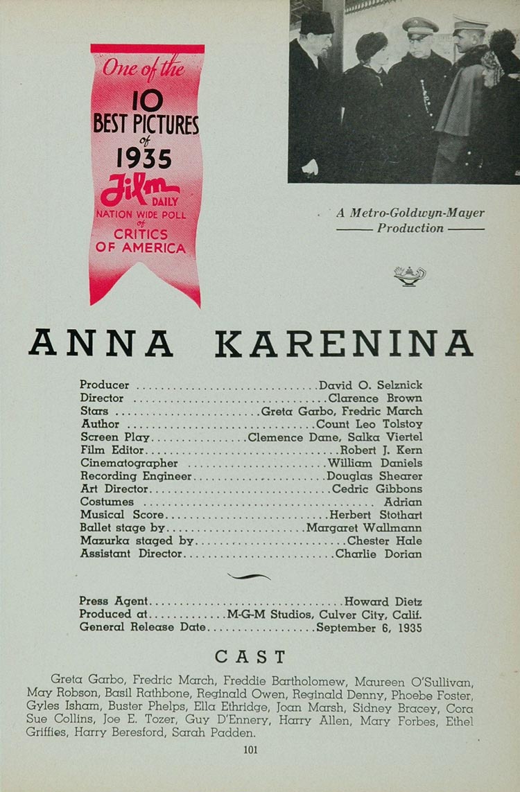 This is an original 1936 two-color print ad for the 1935 MGM movie, "Anna Karenina." This movie was one of the 10 Best Pictures of 1935 according to a