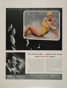This is an original 1936 color print ad for the Bell & Howell palm size color movie camera. This is a great print item for the collector of this vintage camera!