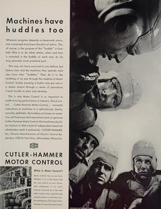 This is an original 1936 print ad from Cutler-Hammer, Inc. 1320 St. Paul Ave., Milwaukee, Wisconsin, for the Cutler-Hammer Motor Control. The ad has a very nice image of a group of football players in a huddle--photograph by Stephen J. Heiser.