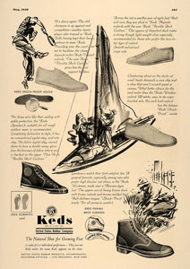 This is an original 1936 black and white print ad for Keds Shoes, a product by the United States Rubber Company, located at 1790 Broadway in New York.