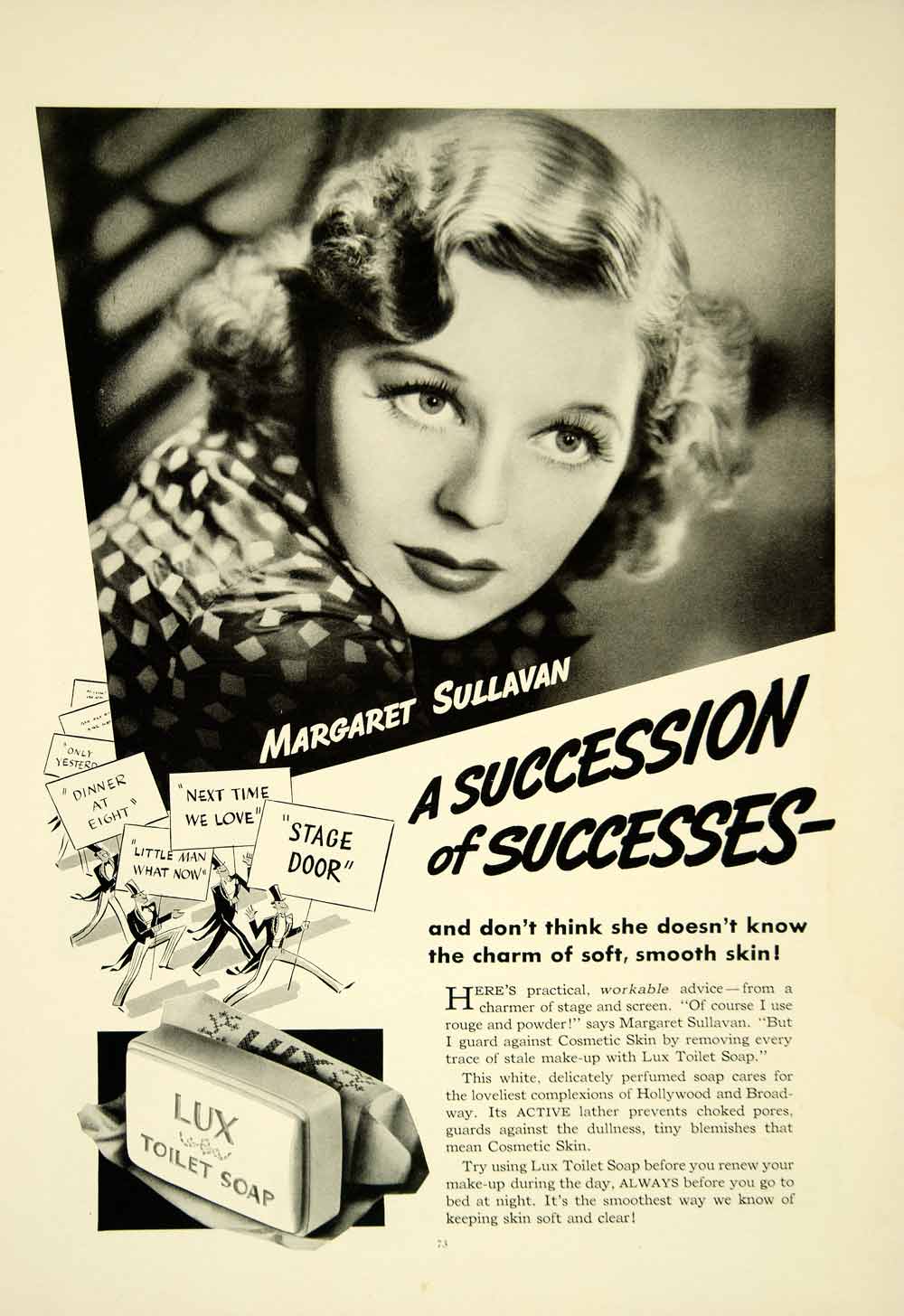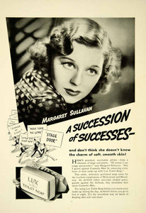 This is an original 1936 black and white print ad of Margaret Sullavan for Lux Toilet Soap.