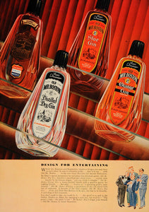 This is an original 1936 color print ad for Old Mr. Boston Gin Varieties, including Orange Gin, Sloe Gin, Distilled Dry Gin and Straight Whiskey.