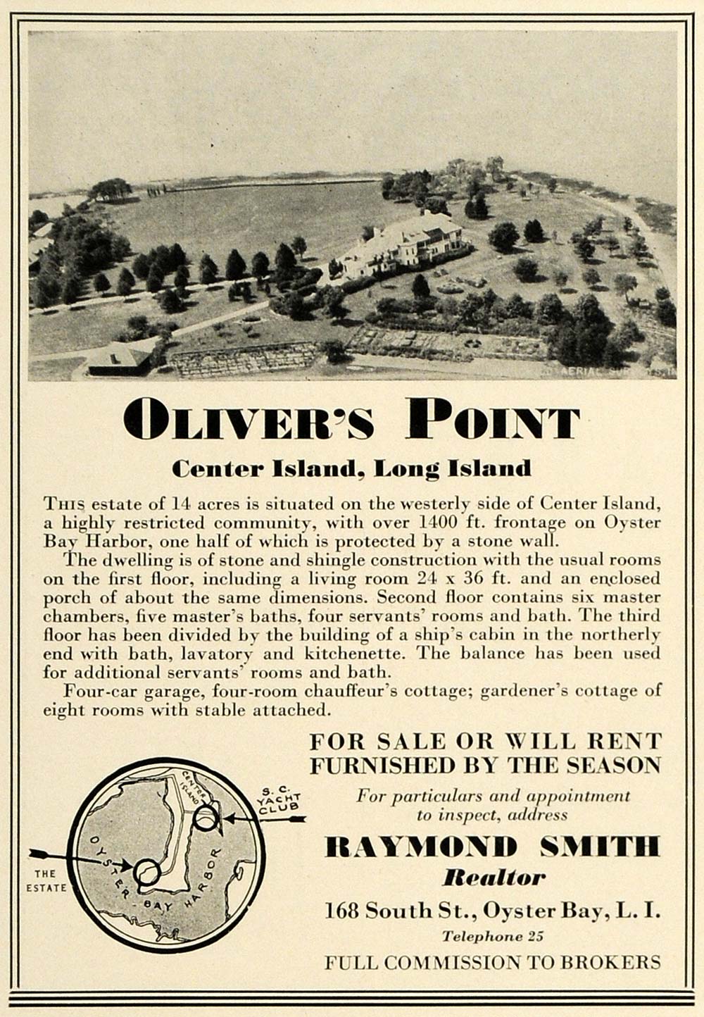 This is a rare original 1936 black and white print ad promoting Real State in Oliver's Point located in Center Island, Long Island.