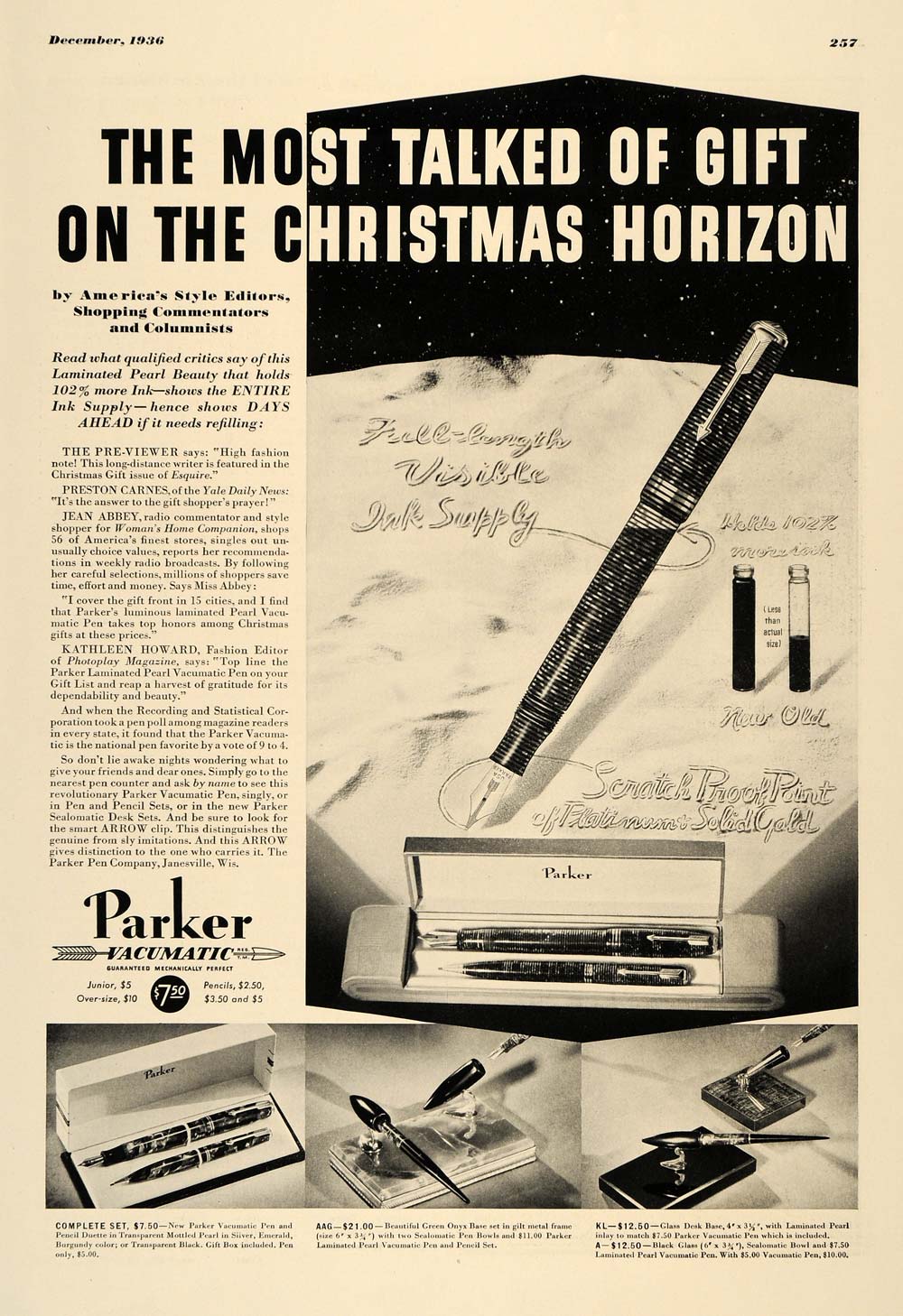 1936 Ad Parker Laminated Pearl Vacumatic Fountain Pen - ORIGINAL ESQ1