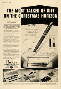 Keywords specific to this image: penmanship, write, writing, pencil, handwriting, ink, inkwell, Christmas, gift, Vacumatic Vintage Advertising