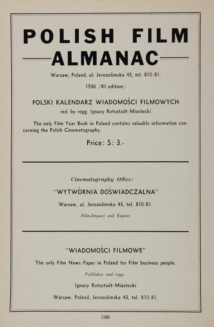 Wiadomosci Filmowe, "the only film news paper in Poland for film business people." Warsaw, Poland, Jerozolimska 43.