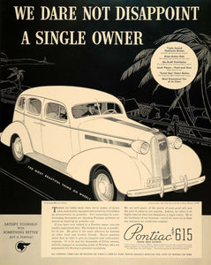 This is an original 1936 black and white print ad for Pontiac automobiles.