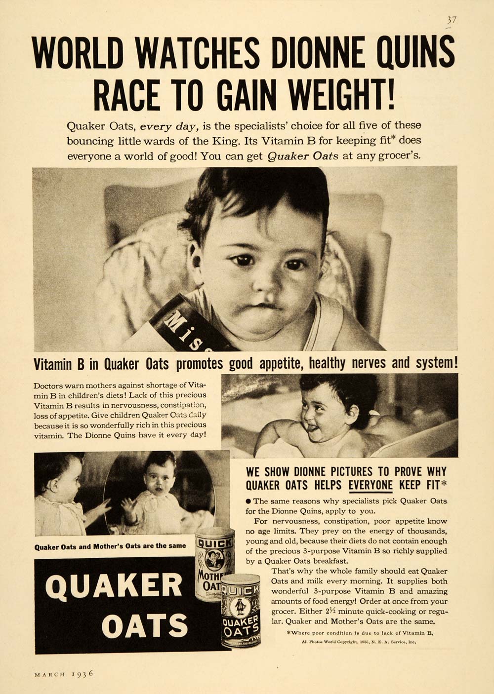 1936 Ad Quaker Oats Cereal Dionne Quintuplets Babies - ORIGINAL ADVERTISING ST1
