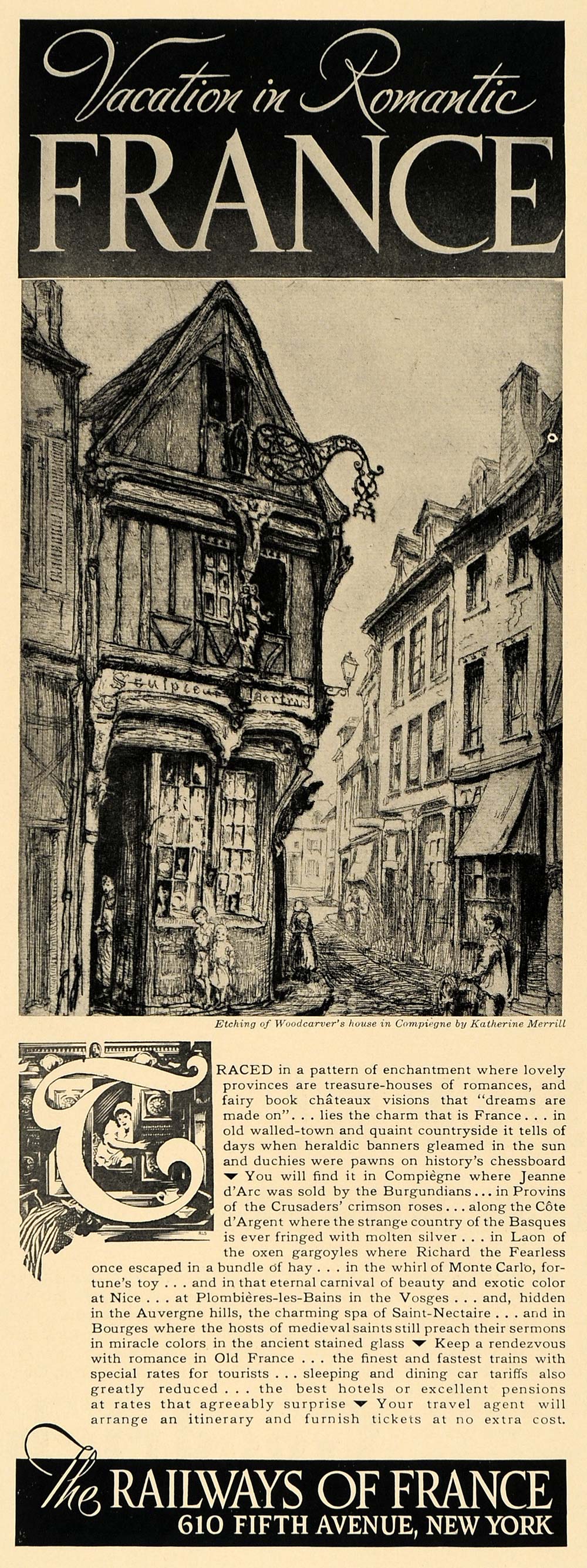 Keywords specific to this image: Richard the Fearless, Jeanne d'Arc, Burgundians, Provins of the Crusaders, Cote d'Argent, Laon of the Oxen Gargoyles, Plombieres-les-Bains, Vosages, Auvergne Hills, Saint-Nectaire, Travel Agent, Tourism Vintage Advertising