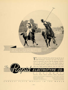 Keywords specific to this image: polo, club, green, game, match, sport, equine, equestrian, horse, horseback, riding, rider, plate, mallet, helmet, swing, ball, stereotypes, mats, sale, advertiser Vintage Advertising