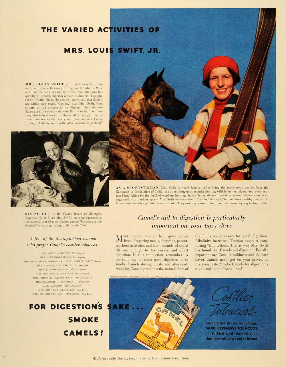 1936 Ad Reynolds Camel Cigarettes Mrs. Louis Swift Jr Pet Great Dane Chicago PR2