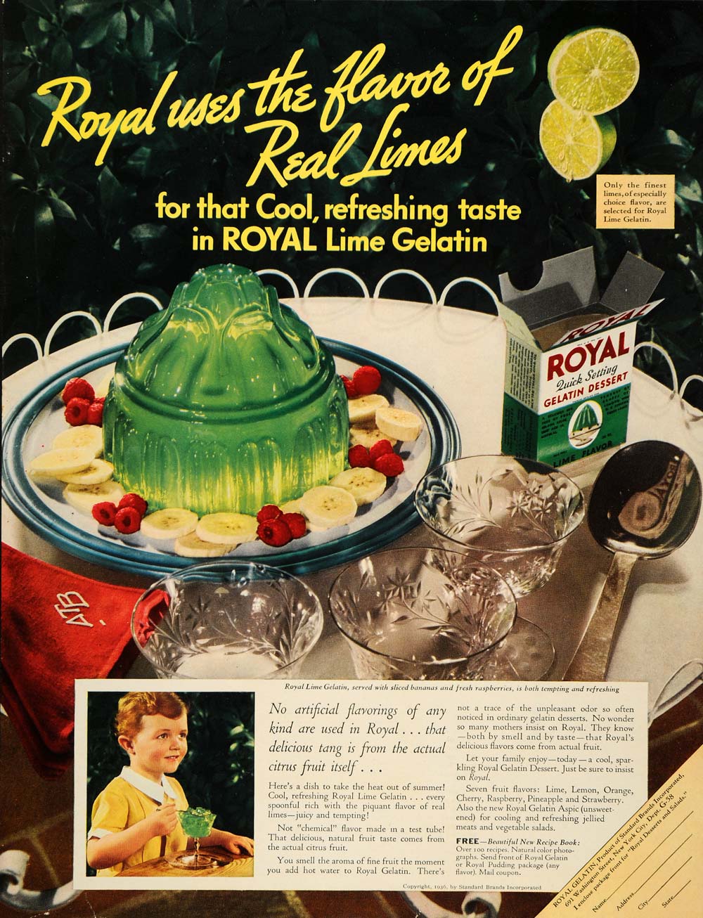1936 Ad Royal Lime Gelatin Jell-O Dessert Fruit Sweets Flavored Jelly Child PR2