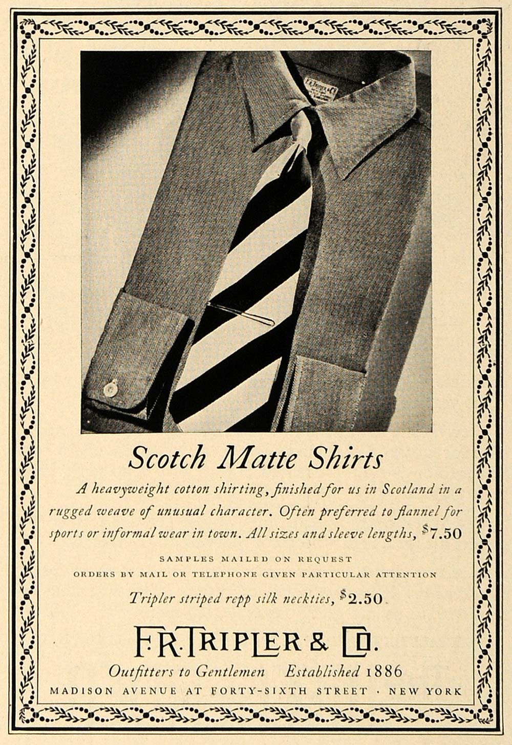 This is an original 1936 black and white print ad for Scotch Matte Shirts from F. R. Tripler & Co. located in New York.