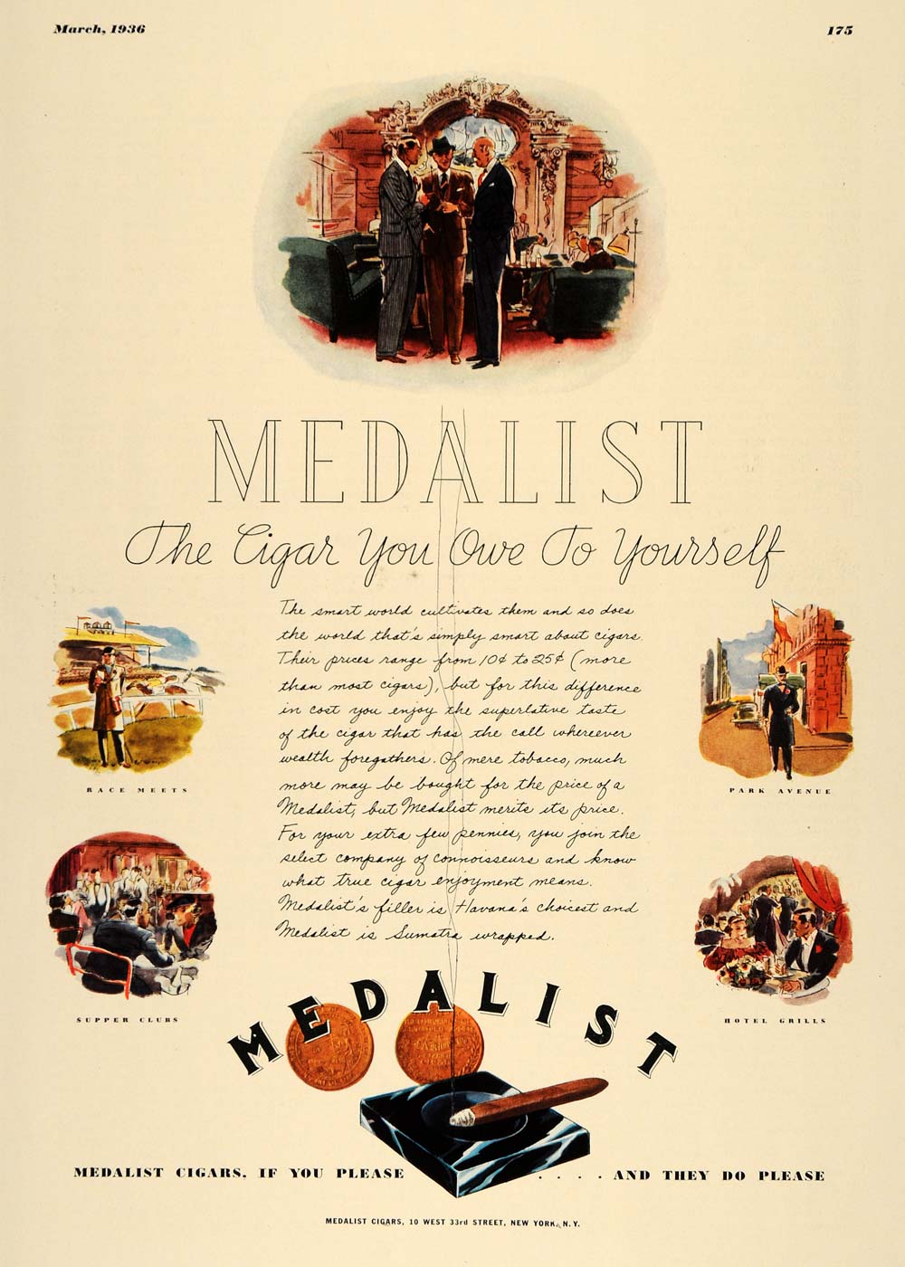 Keywords specific to this image: The Cigar You Owe To Yourself. Ashtray, Smoking, Smoke, 10 West 33rd Street New York City, Pricing Vintage Advertising