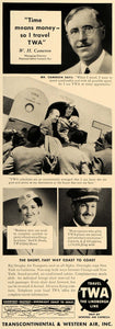 This is an original 1936 black and white print ad for Flying with Transcontinental & Western Air.