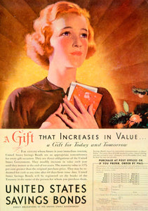 This is an original 1936 color print ad for United States Savings Bonds, the perfect Christmas gift that year.