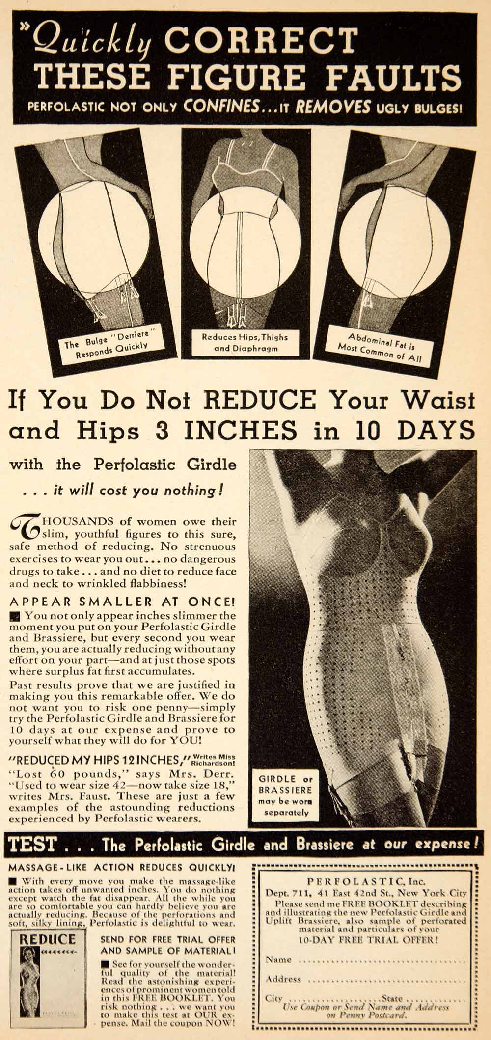 This is an original 1936 black and white print ad for the Perfolastic Girdle and Brassiere to