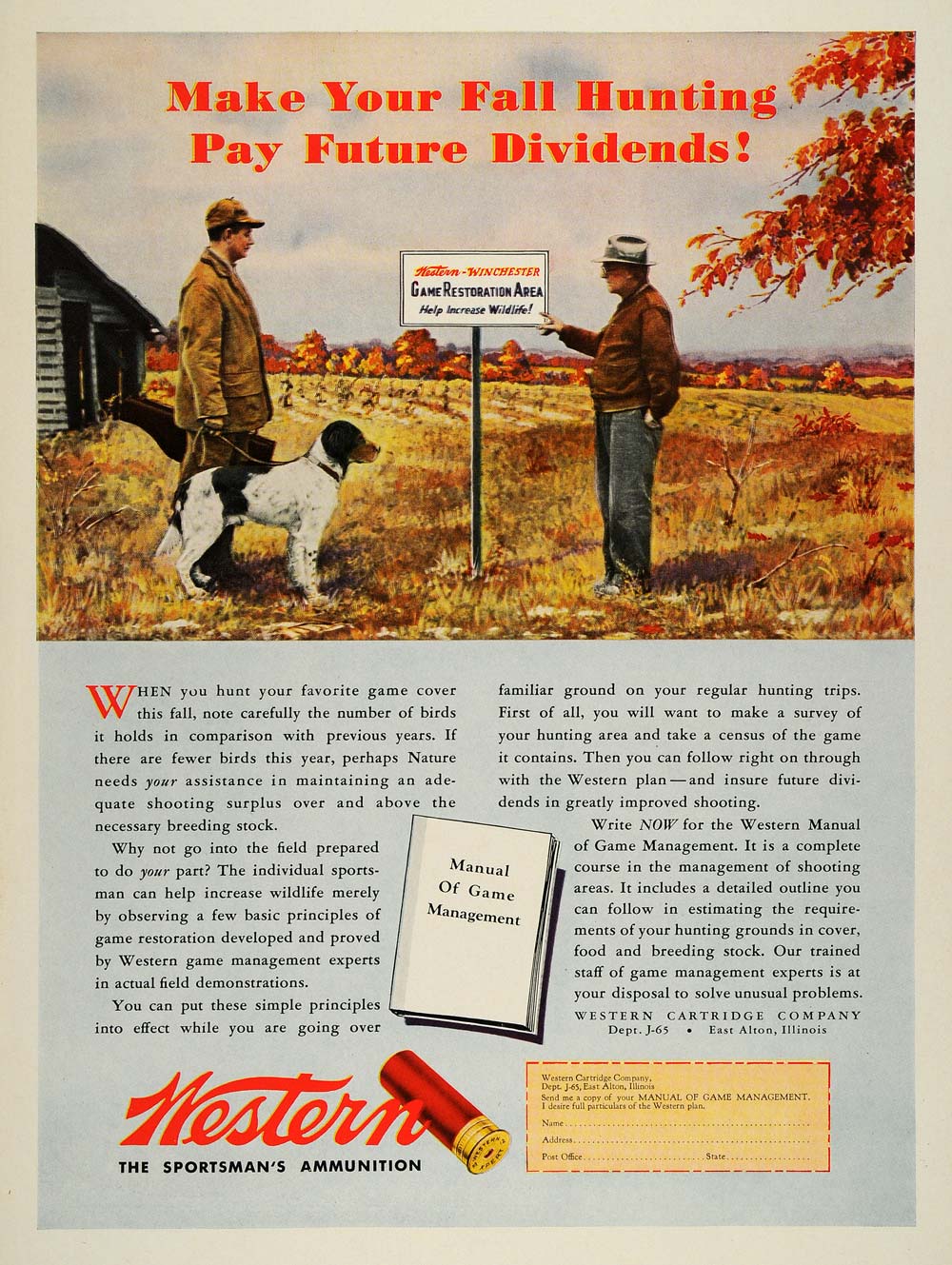 This is an original 1936 color print ad for the Western ammunition from Western Cartridge Company located in East Alton, Illinois.