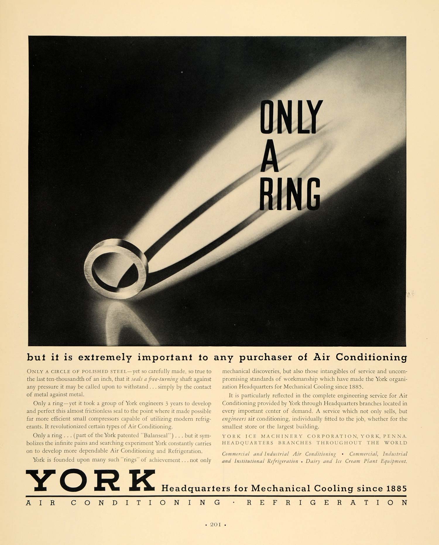 This is an original 1936 black and white print ad for the York Ice Machinery Corporation located in York, Pennsylvania.