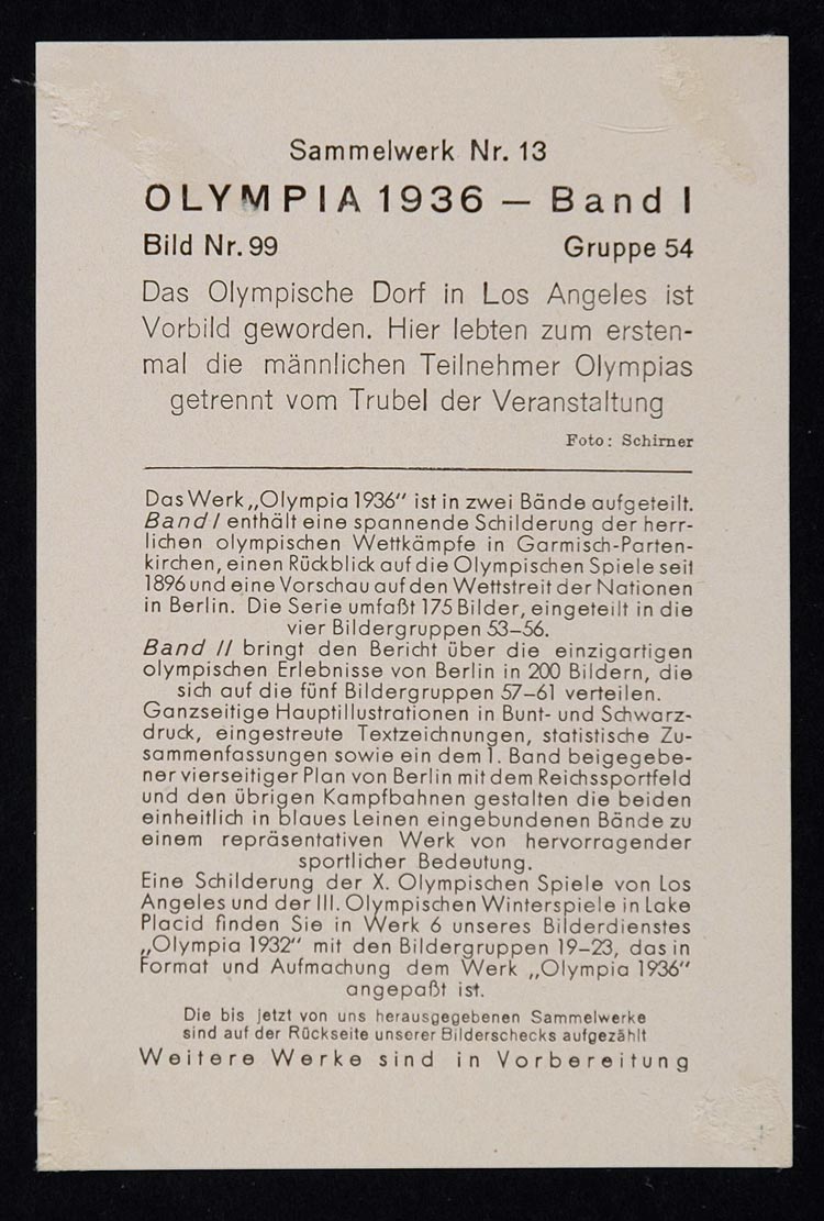 Period Paper is pleased to offer a collection of original halftone and color prints from the 1936 IV Olympic Winter Games in the town of Garmisch-Partenkirchen in Bavaria, Germany and the Games of the XI Olympiad (the 1936 Olympic Summer Games) in Berlin. These images have an accompanying description on the reverse, please scroll down to see the reverse. The prints were all hand tipped-in and may have some glue damage on the reverse of the image from the removal process.