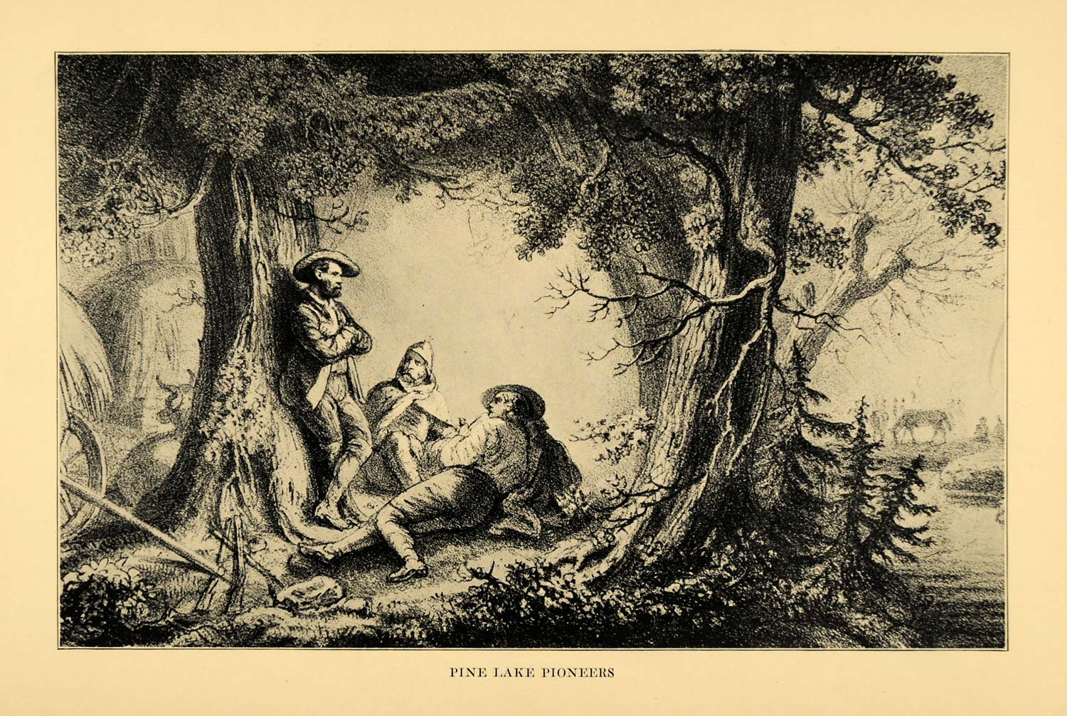 This is an original 1936 halftone print featuring an illustration of the Pine Lake Pioneers. The New Upsala, often referred to as the Pine Lake Settlement, was an early pioneer Swedish-American community in Wisconsin.